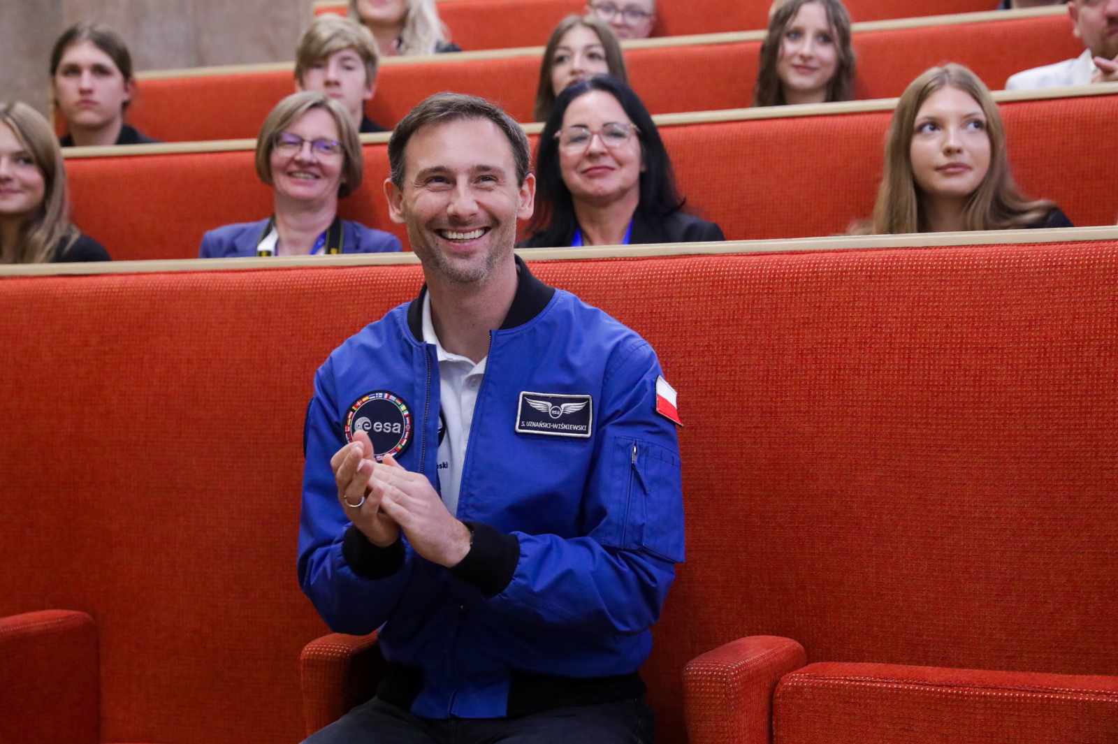 Dziękował uczestnikom konkursów i podkreślił, że to dzięki ich pomysłom mógł wykonać moją pracę na orbicie, m.in. wykonywać doświadczenia z wodą czy mierzyć masę obiektów pozbawionych ciężaru.