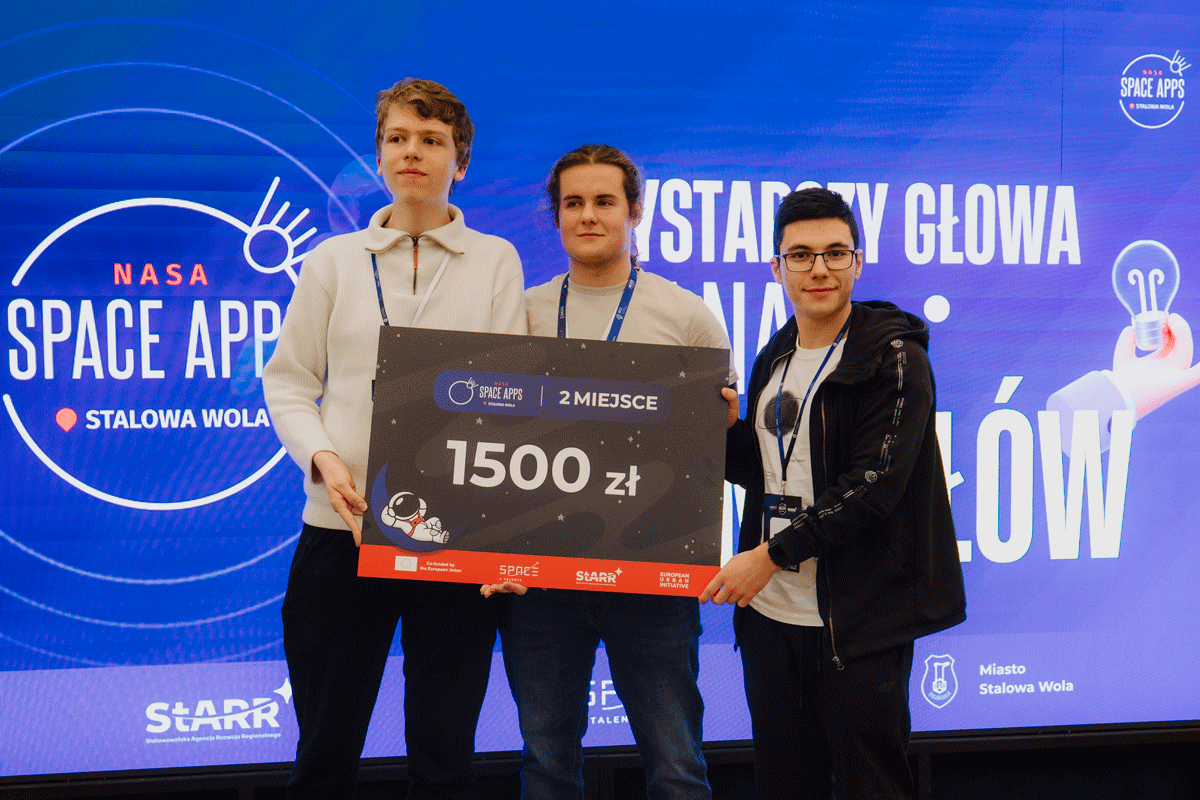 Trzyosobowy zespół Goon wygrał kosmiczny hackathon w Stalowej Woli (woj. podkarpackie). Młodzi programiści stanęli na najwyższym miejscu na podium za projekt wykorzystujący dane z satelitów NASA do wykrywania uszkodzeń infrastruktury.