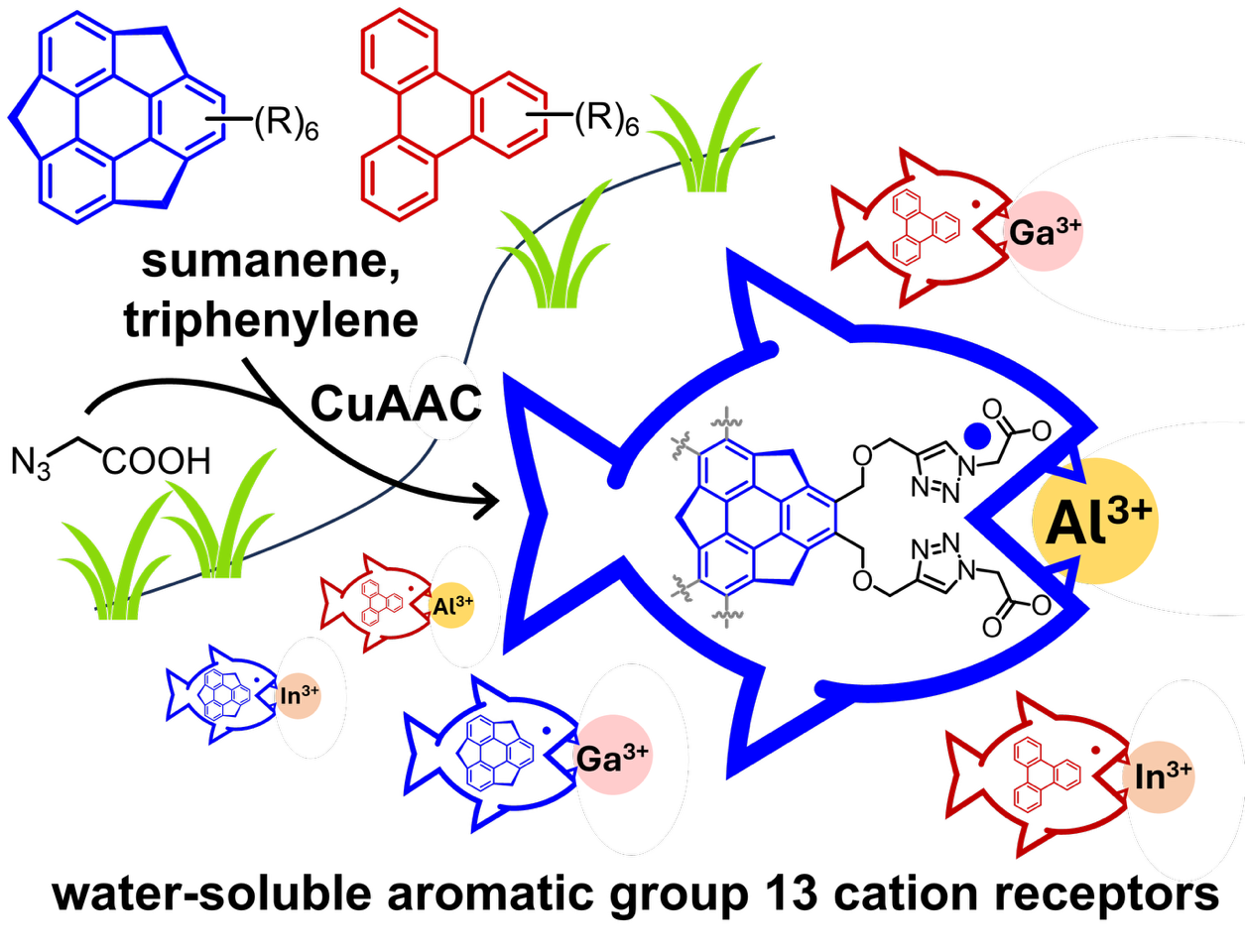 Okazało się, że zmodyfikowane cząsteczki sumanenu wykrywały wybiórczo jony metali z 13. grupy układu okresowego, przede wszystkim glinu, galu i indu. Gdy takie jony pojawiały się w roztworze, fluorescencja sumanenu wyraźnie spadała, co stanowiło jednoznaczny sygnał ich obecności. Dla innych badanych jonów zjawisko występowało ze znacznie mniejszą intensywnością, potwierdzając selektywność metody.