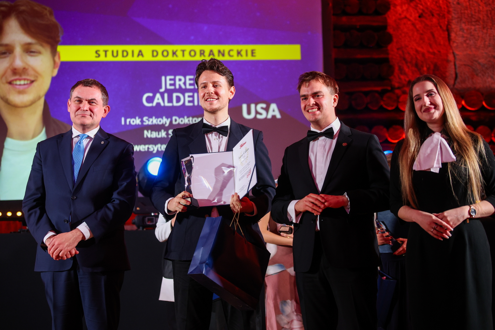29.01.2026. Rektor UJ prof. Piotr Jedynak (L), dyrektor Departamentu Współpracy z Polonią i Polakami za Granicą MSZ Anna Sochańska (2L), przewodniczący Krajowej Reprezentacji Doktorantów Rafał Ramut (P) oraz laureatka nagrody specjalnej Wiktoria Ptak (2P) podczas gali nagród „Gwiazdy Umiędzynarodowienia 2026” i INTERSTUDENT 2026, 29 bm. w Kopalni Soli „Wieliczka”. Nagrody, przyznawane od 2018 roku, są przeznaczone dla osób mających wybitne osiągnięcia w działaniach na rzecz internacjonalizacji polskich szkół wyższych. (mr) PAP/Łukasz Gągulski29.01.2026. Laureat nagrody specjalnej Faith Pekcan podczas gali nagród „Gwiazdy Umiędzynarodowienia 2026” i INTERSTUDENT 2026, 29 bm. w Kopalni Soli „Wieliczka”. Nagrody, przyznawane od 2018 roku, są przeznaczone dla osób mających wybitne osiągnięcia w działaniach na rzecz internacjonalizacji polskich szkół wyższych. (mr) PAP/Łukasz Gągulski29.01.2026. Rektor UJ prof. Piotr Jedynak (2L), przewodnicząca Parlamentu Studentów RP Julia Bednarska-Leśniak (P), przewodniczący Krajowej Reprezentacji Doktorantów Rafał Ramut (2P) oraz laureat nagrody specjalnej Pascal Muam Mah (L) podczas gali nagród „Gwiazdy Umiędzynarodowienia 2026” i INTERSTUDENT 2026, 29 bm. w Kopalni Soli „Wieliczka”. Nagrody, przyznawane od 2018 roku, są przeznaczone dla osób mających wybitne osiągnięcia w działaniach na rzecz internacjonalizacji polskich szkół wyższych. (mr) PAP/Łukasz Gągulski