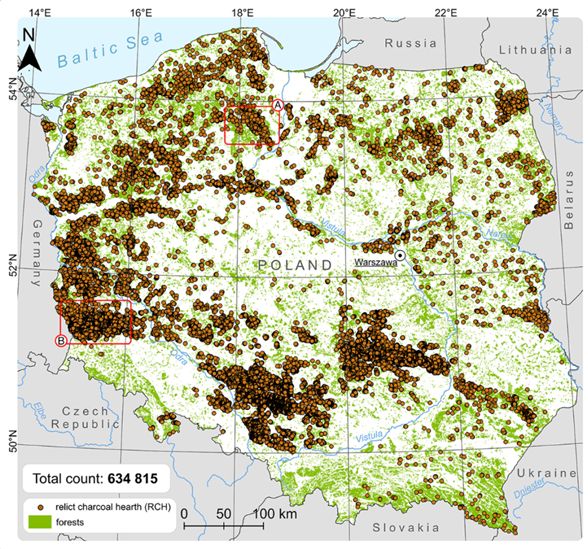 Kluczem do odkrycia skali produkcji węgla drzewnego na polskich ziemiach okazały się zdjęcia z lotniczego skanowania laserowego (LiDAR), które ukazują rzeźbę terenu bez roślinności. Miejsce po mielerzu to charakterystyczny, lekko zapadnięty okrąg. Stypendysta mgr Krzysztof Szewczyk przez dwa lata analizował mapy całego kraju, identyfikując ponad 630 tys. takich obiektów.