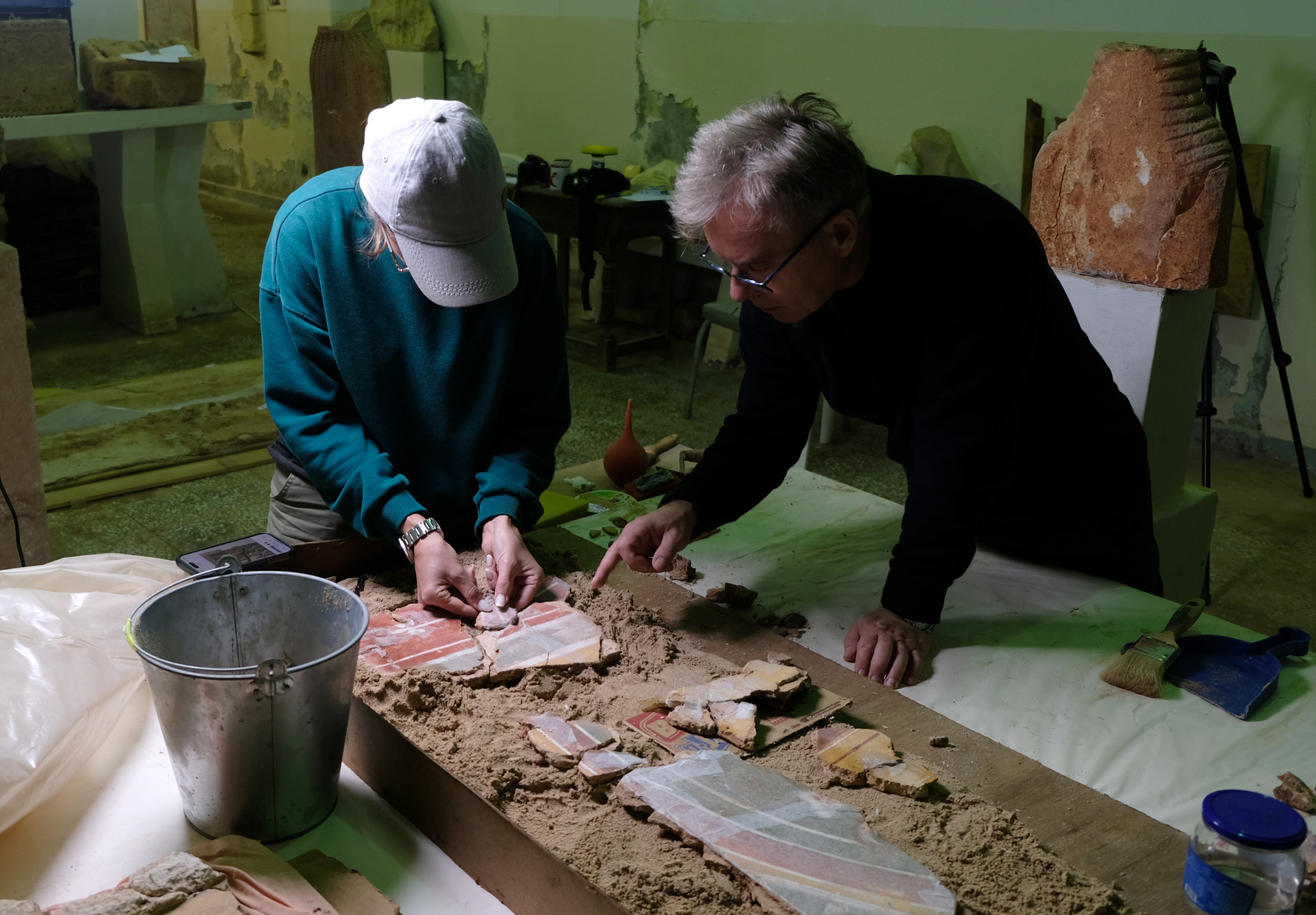 Wraz z archeologami w Ptolemais pracują też konserwatorzy z Akademii Sztuk Pięknych w Warszawie, pod kierunkiem profesora Krzysztofa Chmielewskiego. Inwentaryzują oni i oceniają stan zachowania malowideł, przeniesionych z Domu Leukaktiosa do miejscowego muzeum w 2008 roku. To łącznie kilkadziesiąt metrów kwadratowych malowideł. Prowadzą też inne działania, m.in. konserwację bizantyńskiego malowidła z przedstawieniem twarzy brodatego mężczyzny, a także wykonali replikę unikatowego, dwutarczowego kamiennego zegara słonecznego odkrytego przez warszawskich archeologów w 2010 r.