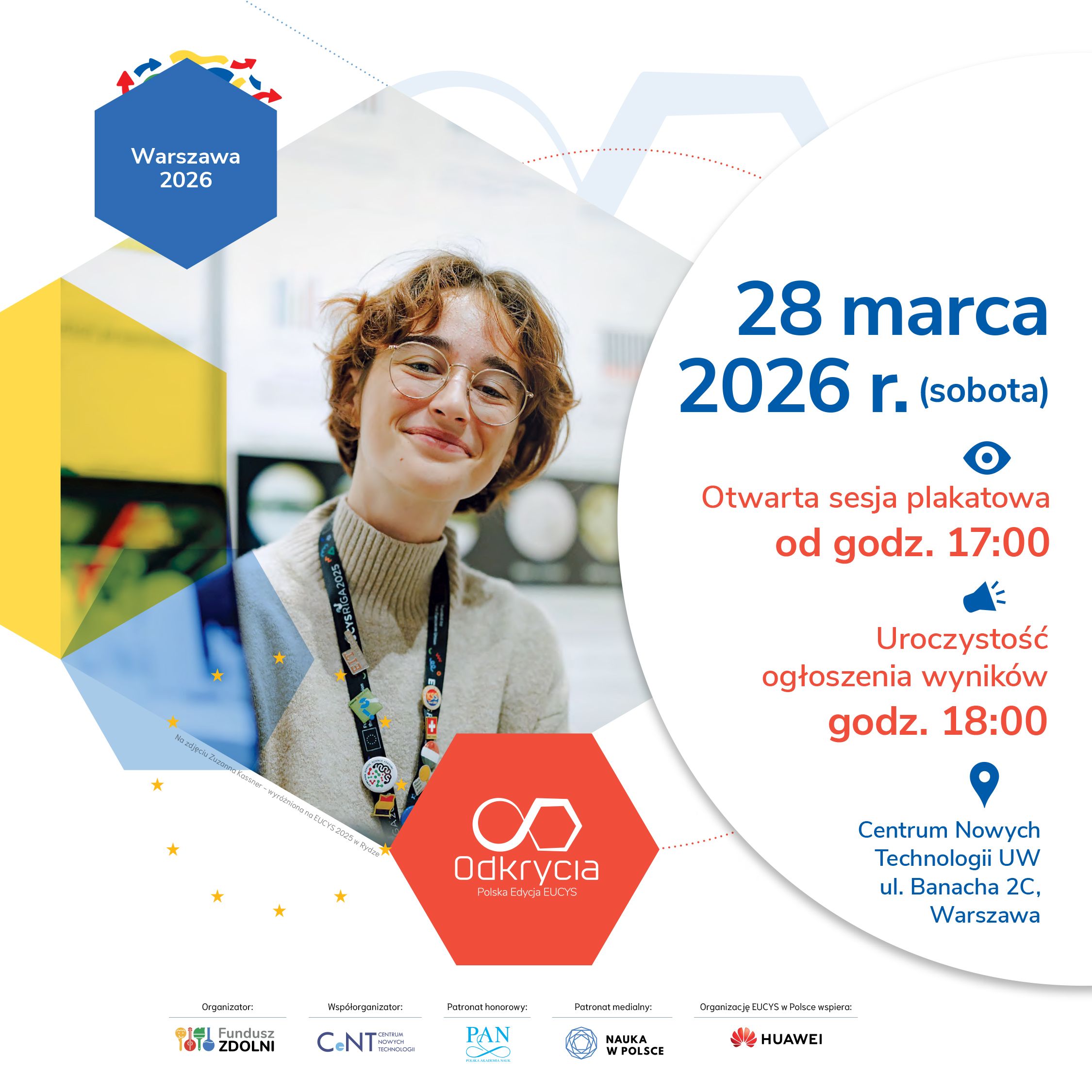 Finał konkursu odbędzie się 28 marca 2026 r. w Centrum Nowych Technologii Uniwersytetu Warszawskiego. W programie wydarzenia zaplanowano otwartą sesję plakatową, podczas której finaliści zaprezentują swoje projekty badawcze i odpowiedzą na pytania uczestników oraz ekspertów. Sesja rozpocznie się o godz. 17:00. Wydarzenie ma charakter otwarty, a wstęp dla publiczności jest wolny.