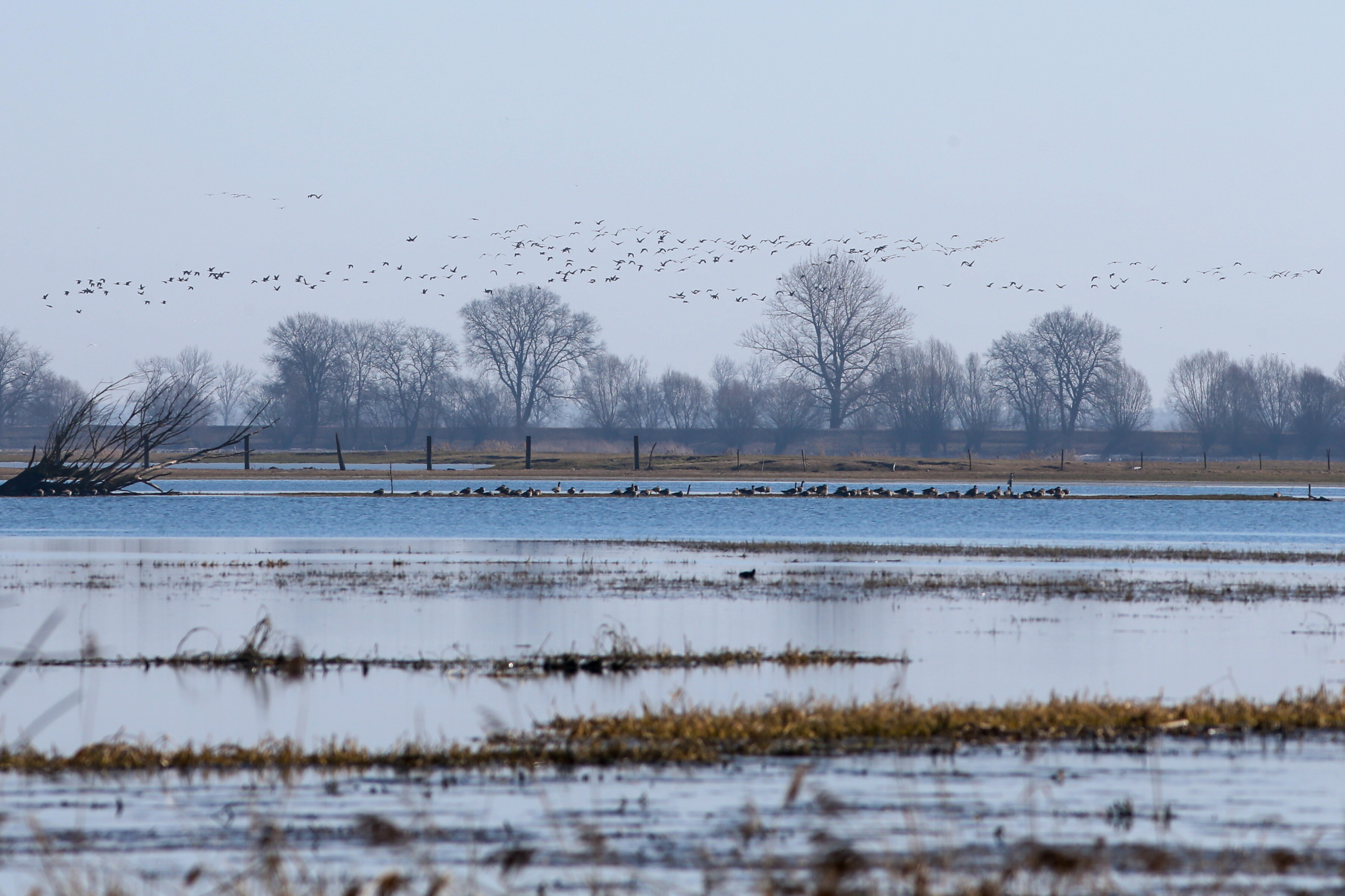 O tej prze roku na rozlewiskach i podmokłych łąkach spotkać można m.in. czajki, rycyki, bataliony czy kaczki, a w trzcinowiskach rozbrzmiewa charakterystyczny śpiew trzciniaków i rokitniczek. Nad wodami krążą drapieżniki, takie jak bieliki czy błotniaki. Na podmokłych łąkach można dostrzec majestatyczne żurawie gęsi i łabędzie.