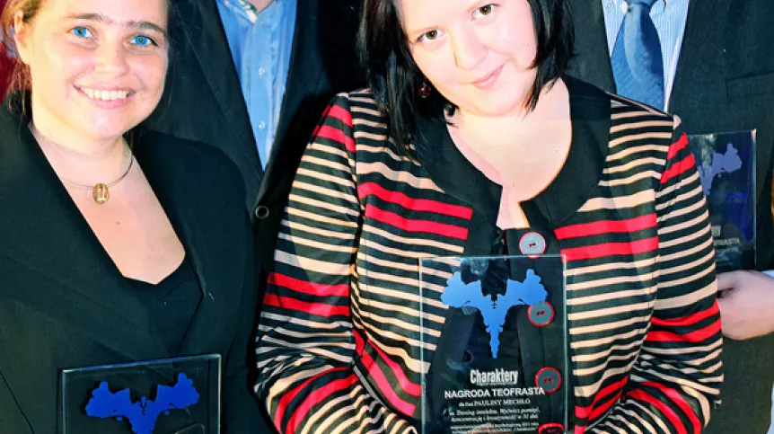 Tomasz Zaleśkiewicz, Artur Kołakowski, Agnieszka Pisula, Paulina Mechło i Jolanta Grzelka zostali laureatami czwartej edycji Nagrody Teofrasta, przyznawanej przez magazyn "Charaktery" autorom najlepszych polskich książek psychologicznych wydanych w 2011 roku - poinformowali organizatorzy konkursu. Nagrody wręczono w czwartek w Bibliotece Uniwersyteckiej w Warszawie.