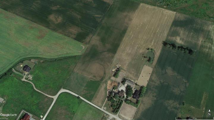 Rondel w m. Tylice widoczny na ortofotomapie (oprac. M. Sosnowski, źródło Google Earth).