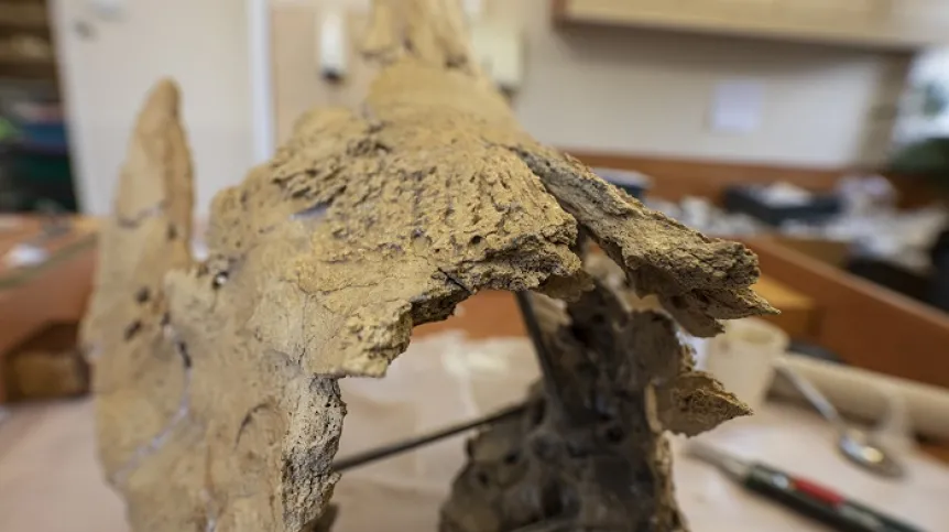 Pracownicy Zakładu Paleozoologii UWr rekonstruują szkielet nosorożca kopalnego, nazywanego Stefanią. W tej chwili koncentrują się na złożeniu czaszki. "Jesteśmy na końcowym etapie stawiania naszego nosorożca z powrotem na nogi" - mówią.