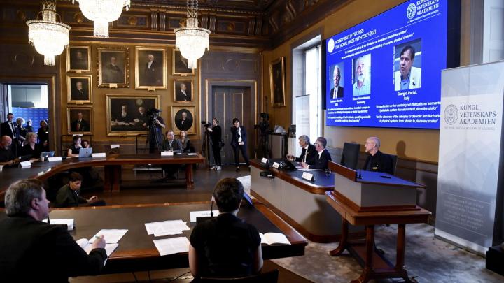 Nagrodę Nobla z fizyki w 2021 r. otrzymali trzej naukowcy. Połowę przyznawanej kwoty pieniężnej otrzymali Syukuro Manabe z Uniwersytetu w Princeton i Klaus Hasselmann z Instytutu Meteorologii im. Maxa Plancka. Uhonorowano ich za „fizyczne modelowanie klimatu Ziemi, ilościowe określanie jego zmienności i wiarygodne przewidywanie globalnego ocieplenia". Drugą połowę otrzymał natomiast Giorgio Parisi z Uniwersytetu Rzymskiego „La Sapienza” za „wzajemne oddziaływania nieporządku i fluktuacji w układach fizycznych od skali atomowej do planetarnej".